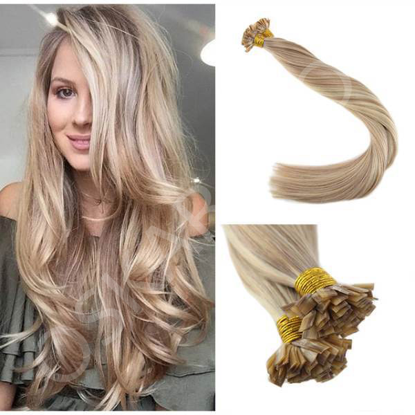 Keratin Extensions Wavy Hair Mixed Strawberry Blonde #18 #60